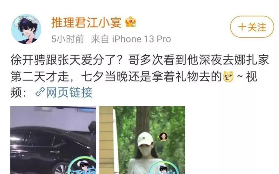 2022年5月,张天爱参加《浪姐3》,徐开骋还公开录制VCR为她加油,评论区互动亲昵。