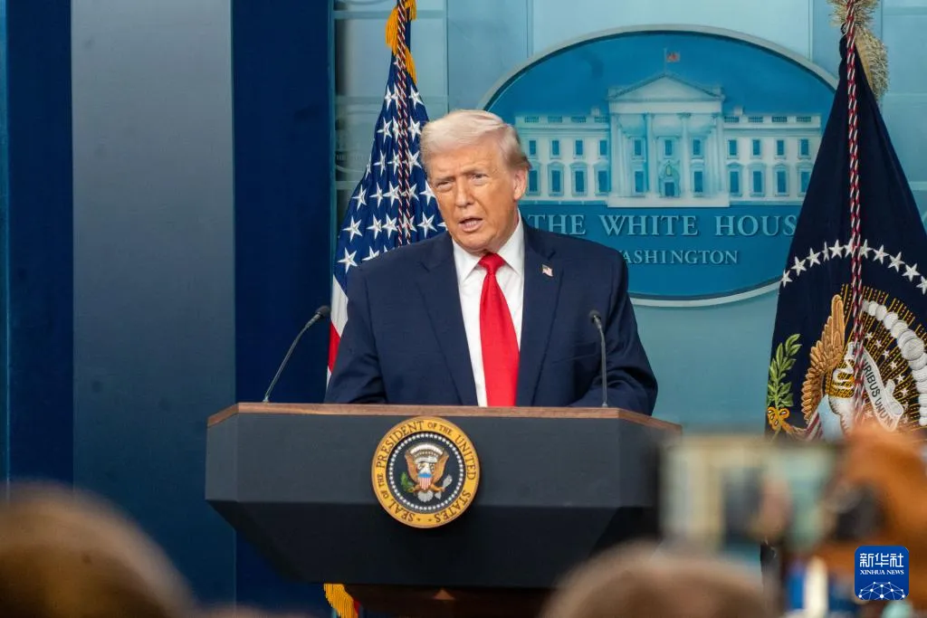 1月20日,在美国首都华盛顿白宫,美国总统特朗普出席记者会。新华社发(李源清摄)