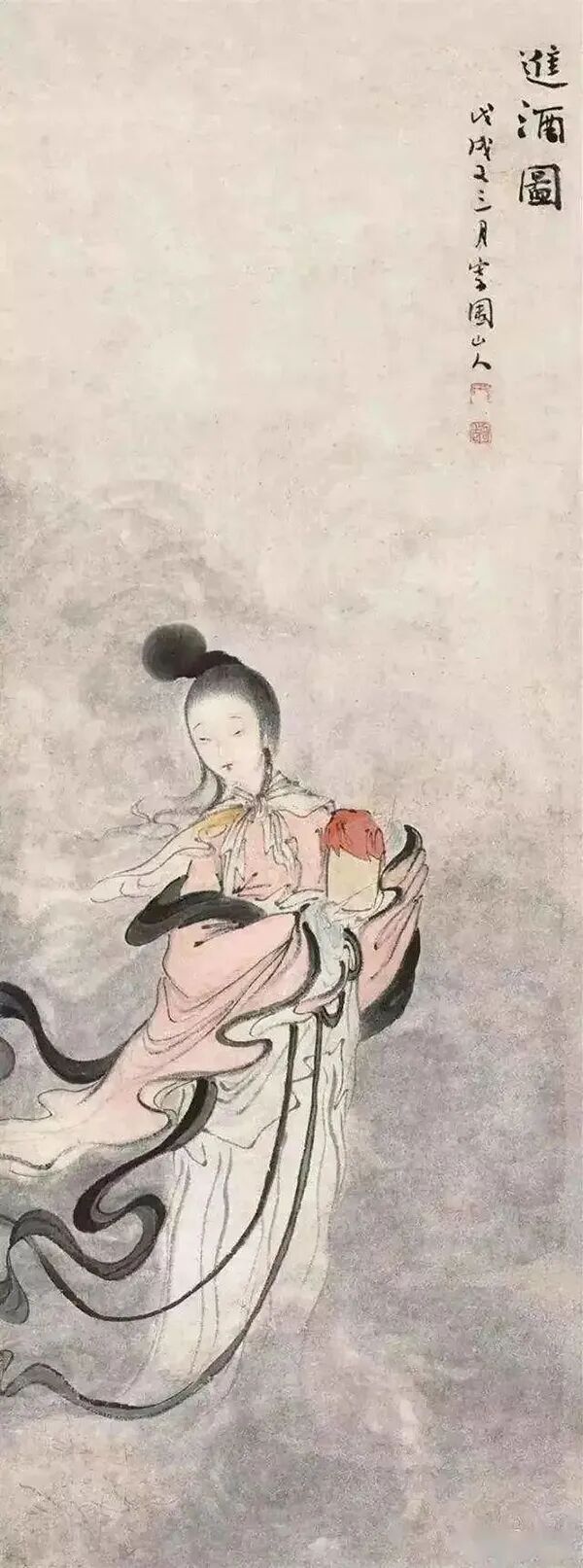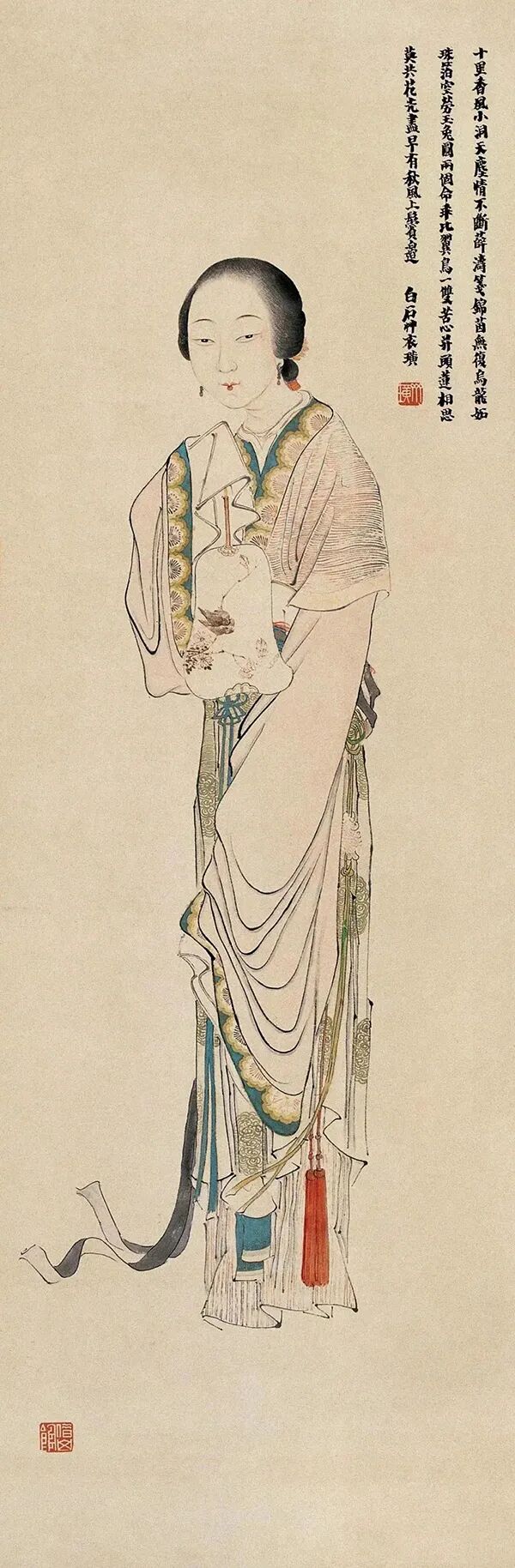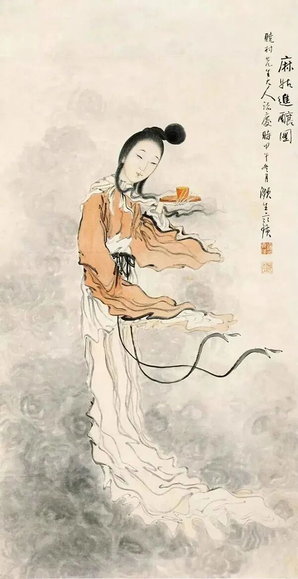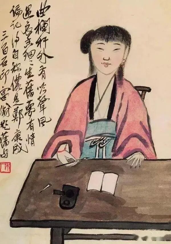 上图来自齐白石《红衣仕女》