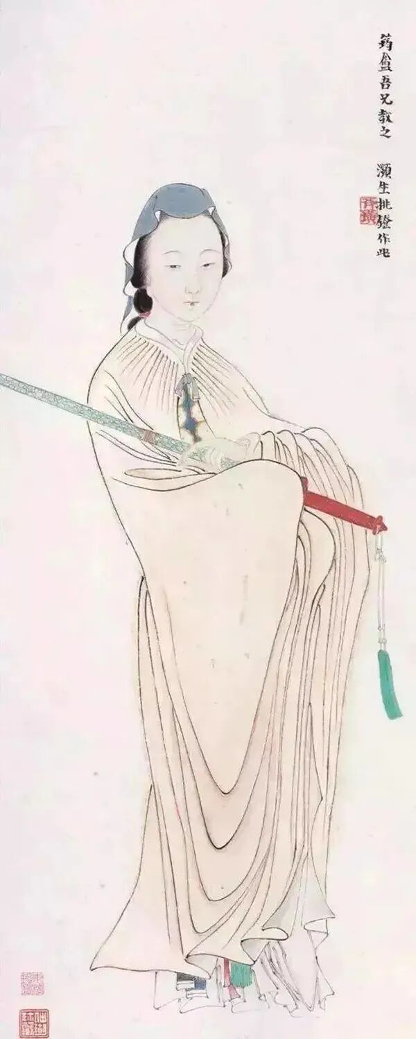上图来自齐白石《持扇仕女图》