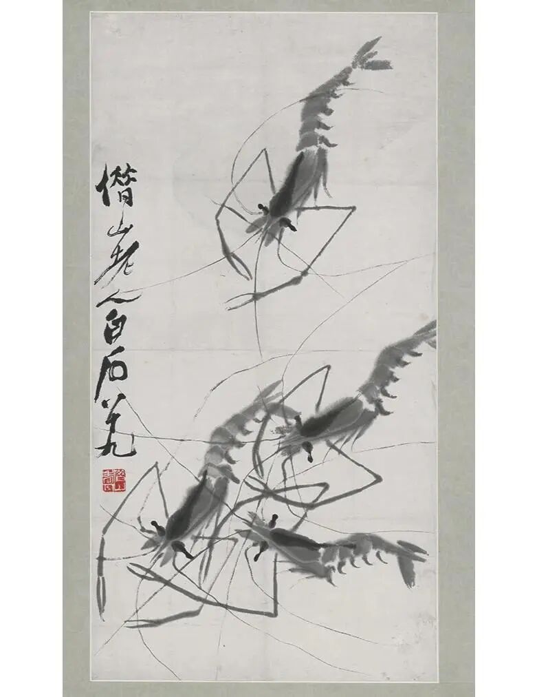 现在说到齐白石,可能很多人首先就会联想到他画的水墨虾,这也很正常,因为他画的水墨虾和黄胄画的驴、李可染画的牛,以及徐悲鸿画的马被并称为“20世纪水墨四绝”,把虾画的活灵活现栩栩如生。