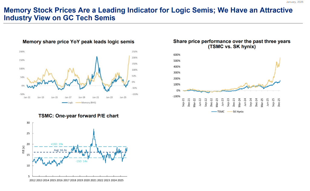 此外,大中华区的科技企业中,台积电(TSMC)依然是毫无争议的核心。作为AI逻辑芯片的代工霸主,TSMC不仅在先进封装(CoWoS)产能上计划激进扩张,其2026年的资本支出和结构性利润率改善也十分强劲。大摩预计,随着英伟达 Rubin芯片在2026年放量,以及Apple A20处理器采用N2工艺,TSMC将继续在高端制程领域保持统治力。
