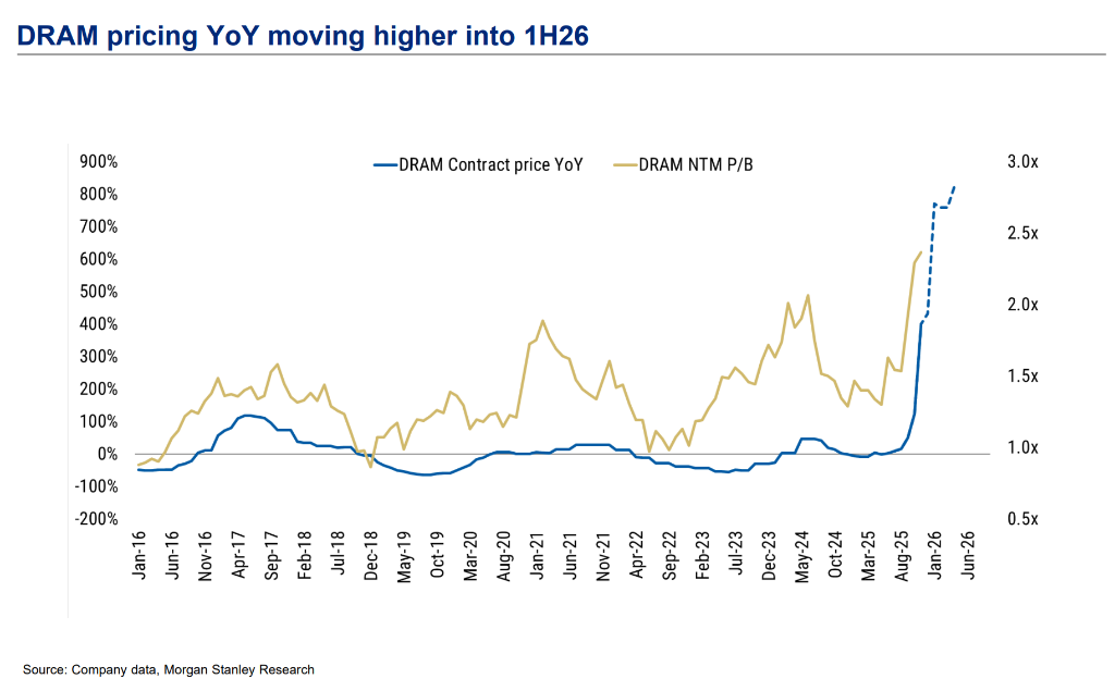 与上游存储厂商的狂欢形成鲜明对比的是,处于下游的硬件OEM厂商正面临严峻挑战。大摩分析师警示,存储成本的通胀正在被视为全行业的挑战,特别是对于那些缺乏定价权的消费电子品牌。