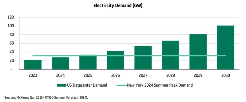 麦肯锡的最新预测更是表明,到2030,美国数据中心电力需求将翻两番,达到80~100吉瓦: