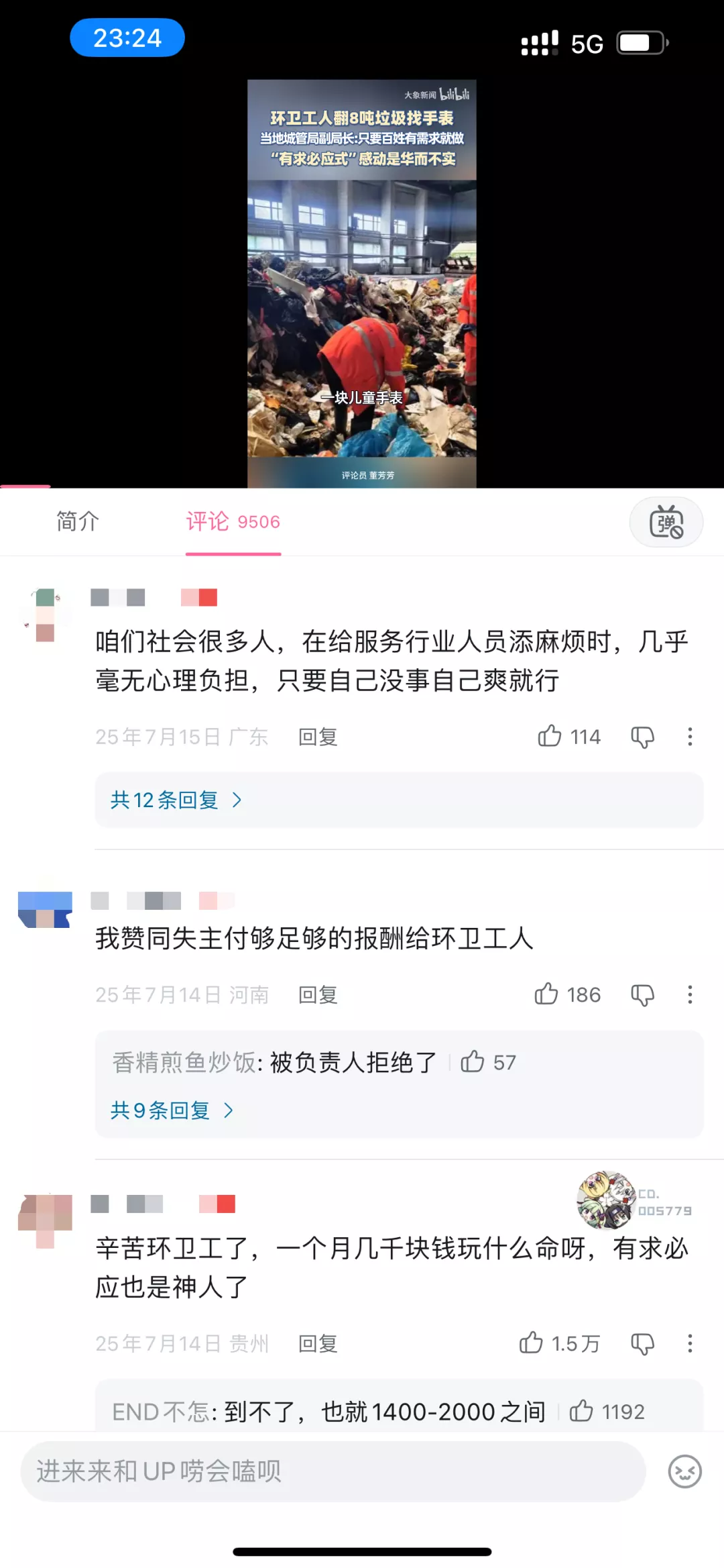 ◉大同两名环卫工人花费4小时寻找儿童手表,引发网友讨论