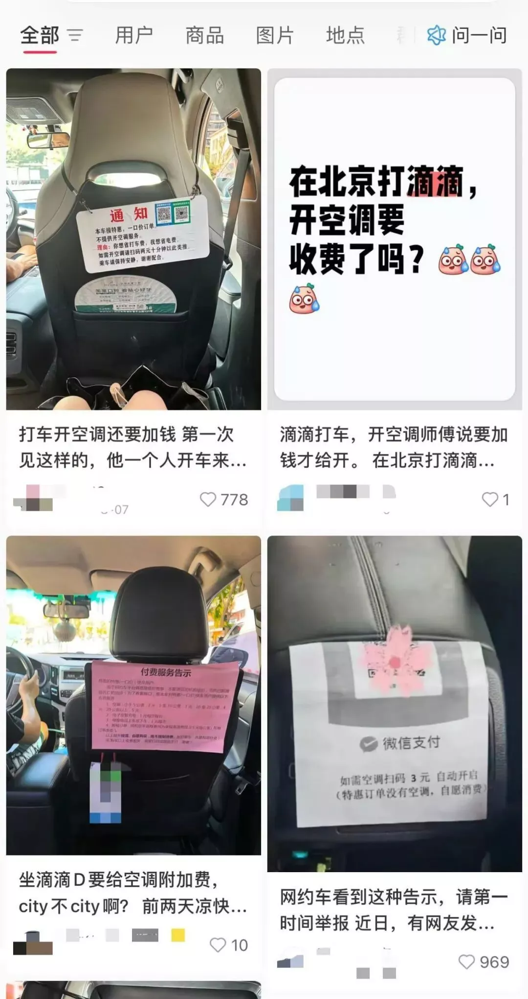 ◉网友反映自己遇到网约车开空调要单独加钱的情况