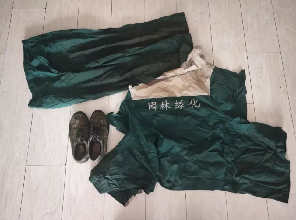 ◉辽宁沈阳园林绿化工人张拥伦的工作服和鞋子。他今年夏天在户外工作时倒下后,再也没有醒来