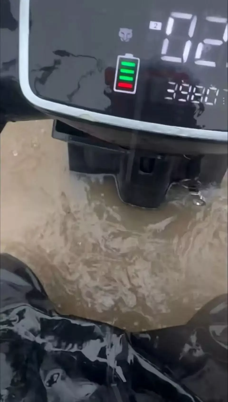 ◉暴雨天,即使大雨漫过膝盖,但仍被要求出勤的外卖员