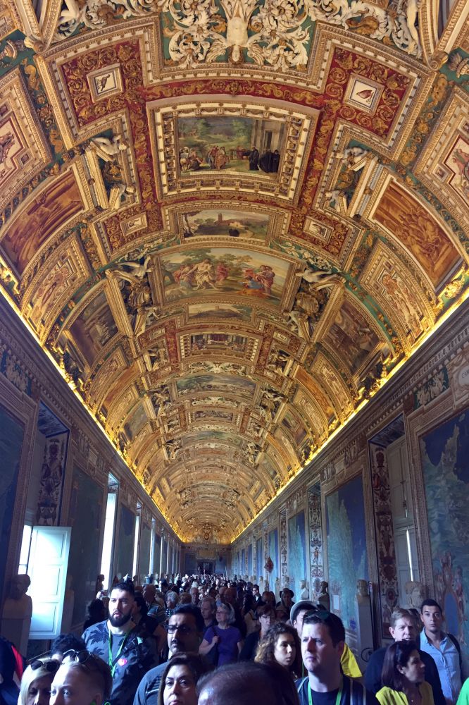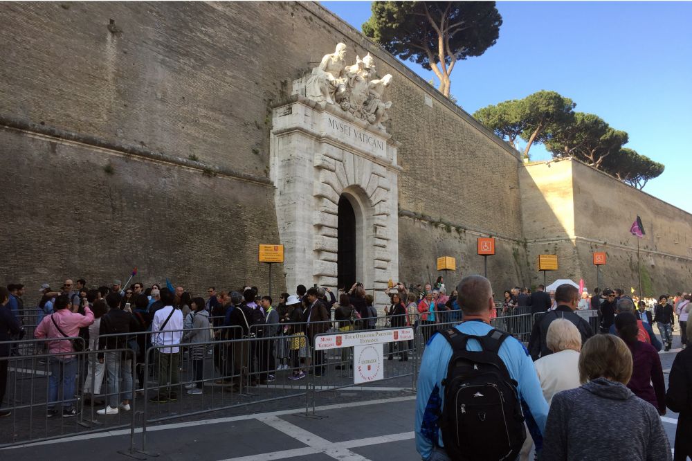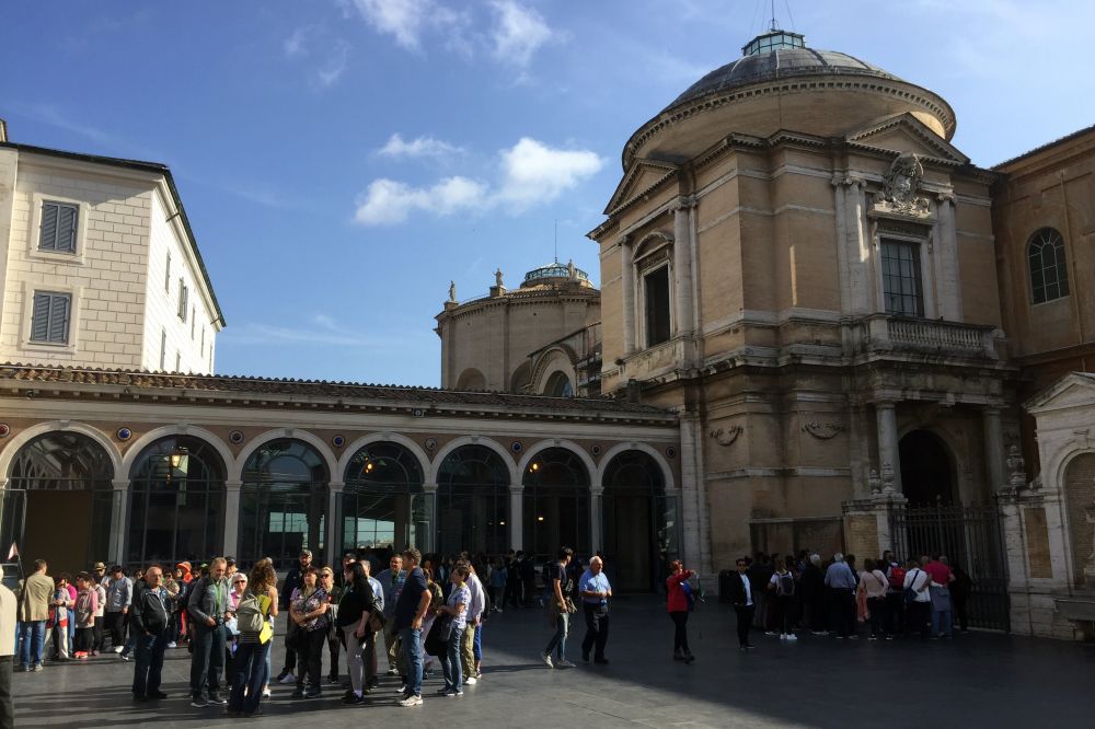 罗马的地铁和多伦多一样,仅有两条线。从共和国广场出发,五站便到梵蒂冈。时间刚过八点,博物馆外已排起长龙,其中至少有五六个韩国旅行团,领队滔滔不绝地讲解以打发等待时间。我们则跟随导游,走Skipline专线径直进入梵蒂冈博物馆。据我所知,只有三家历史悠久的旅游公司安排的团才享有这一特权。