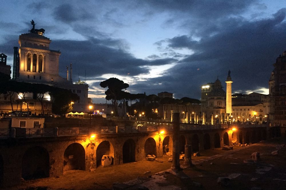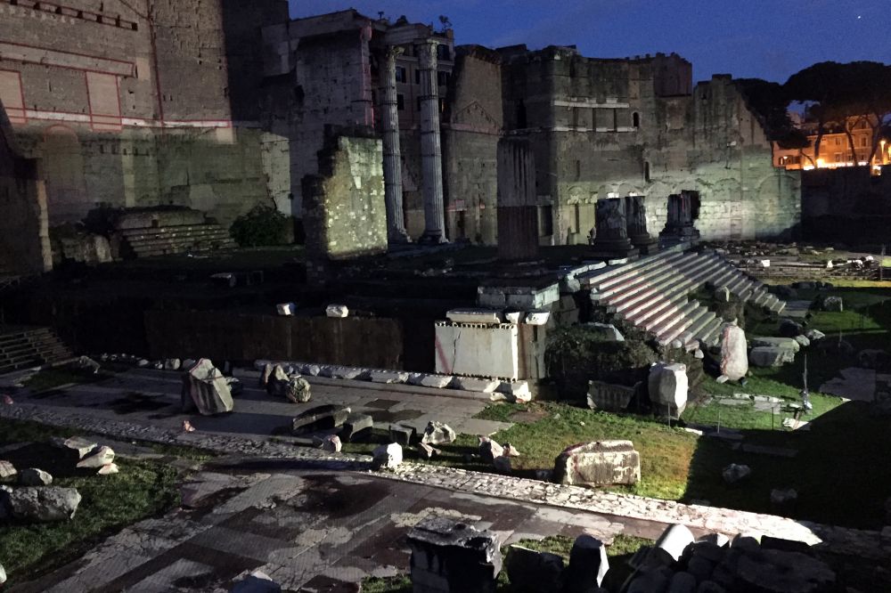 罗马的白天属于历史,夜晚属于时间。当喧嚣散去,古城在夜幕中苏醒,展现另一面貌。灯光映照下的残缺石柱与斑驳断墙,在时空中交错、在夜色中呼吸,彷佛低吟诉说两千年的兴衰荣光。