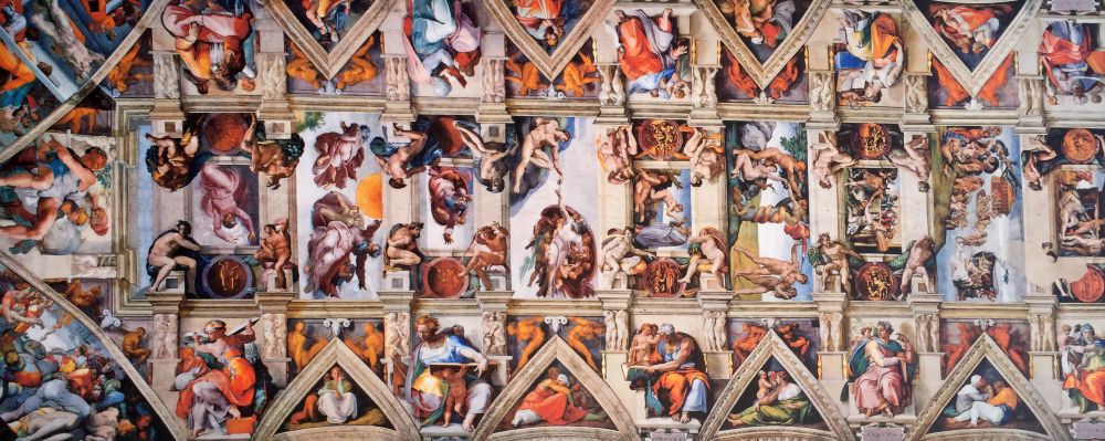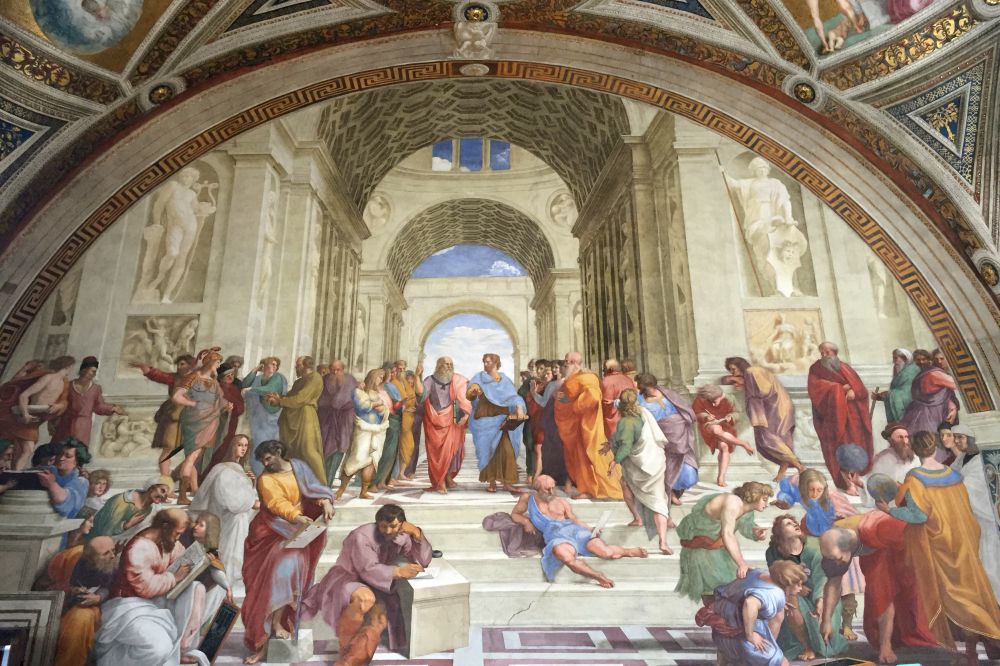 其中最令人叹为观止的,是拉斐尔教宗书房的壁画《雅典学院》和米开朗基罗设计绘制于西斯廷礼拜堂天花板的《创世纪》。站在巨作前,震撼几乎难以言表,甚至带有一丝不真实感。意大利宗教绘画所呈现的神圣与荣耀,所带来的心灵满足与愉悦,是其他画派难以比拟的。