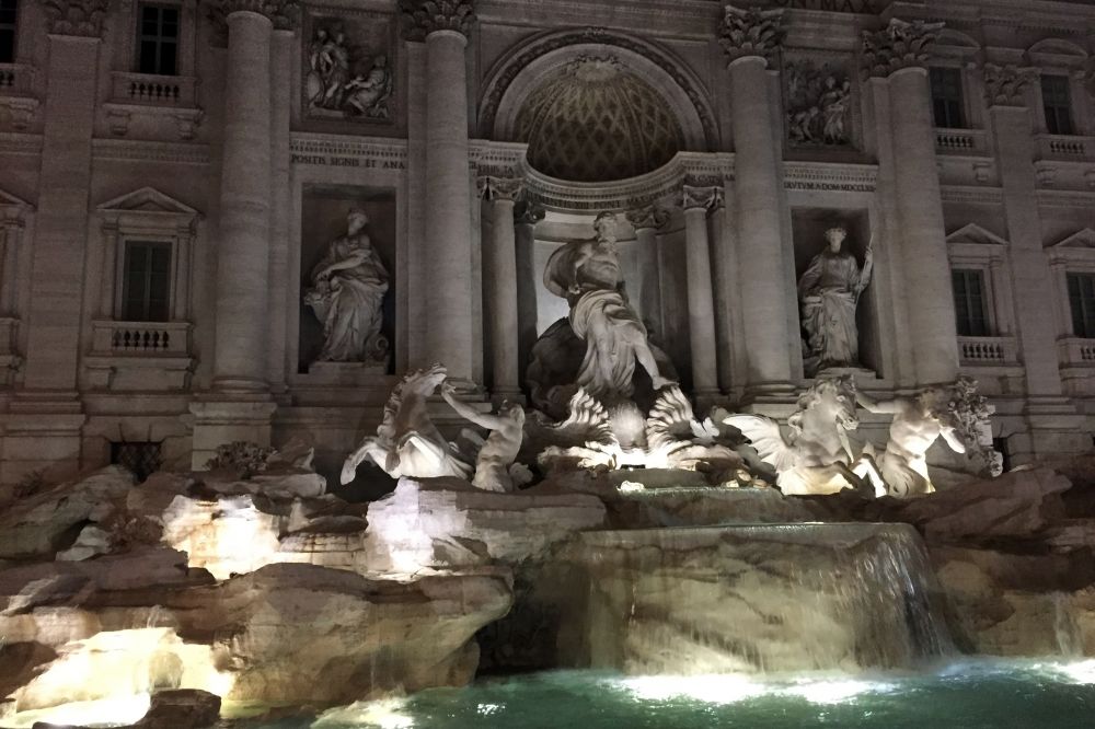 来罗马旅游,许愿池、西班牙台阶、威尼斯广场几乎是必去之地。沿狭窄蜿蜒的街道前行,转过一个街角,特雷维喷泉白色的大理石群像在灯光中豁然展开。喷泉流水昼夜不息,彷佛被赋予生命。投下一枚硬币,心中默默许愿,这一刻的仪式感格外郑重。