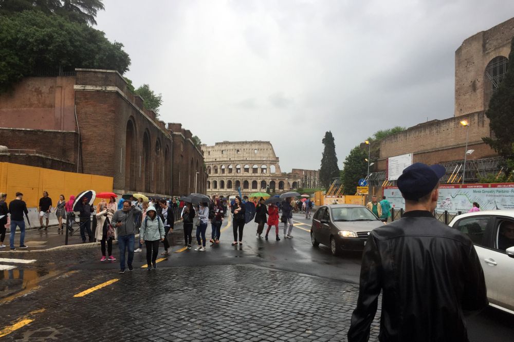 阴雨绵绵的清晨,天空低垂而安静,我们跟随导游Stenfano走近古罗马斗兽场。雨水洗净空气中的尘埃,这座世界上最具标志性的圆形竞技场像只沉默的巨兽,伏卧在城市中央。