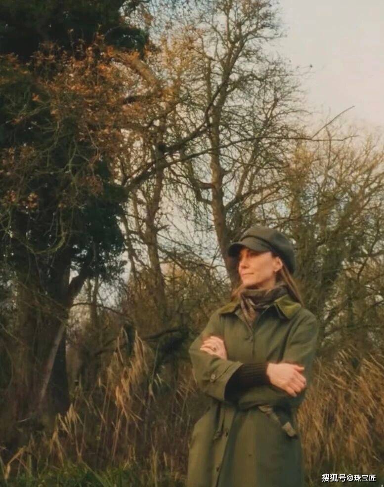 视频中的凯特,独自一人漫步在寂静的冬日森林间,没有华服,没有王冠,唯一的“王室信物”,是她左手无名指上那抹从未褪去的蓝——戴安娜的订婚戒指。