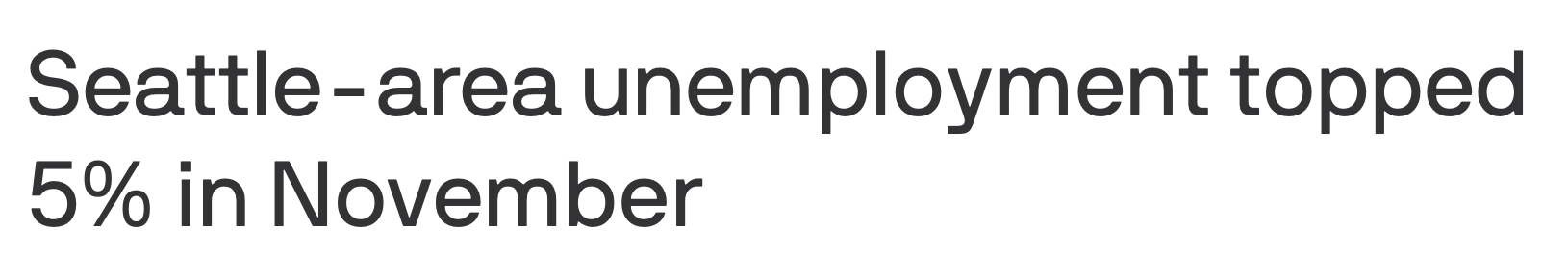 最新数据显示,2025年11月,西雅图—塔科马—贝尔维尤都会区失业率升至5.1%,较一年前同期上升1.1个百分点,涨幅明显高于全美平均0.3个百分点。这也是近年来,该地区在全美主要大都会中失业率增幅排名靠前的一次。