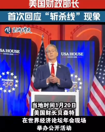 央视旗下新媒体“玉渊谭天”的记者向贝森特询问对“斩杀线”的看法。据“玉渊谭天”报道,其记者现场问了贝森特对“斩杀线”现象的看法:37%的美国成年人拿不出400美金的应急费,有人称这种现象为 “斩杀线”,你怎么看这种说法?