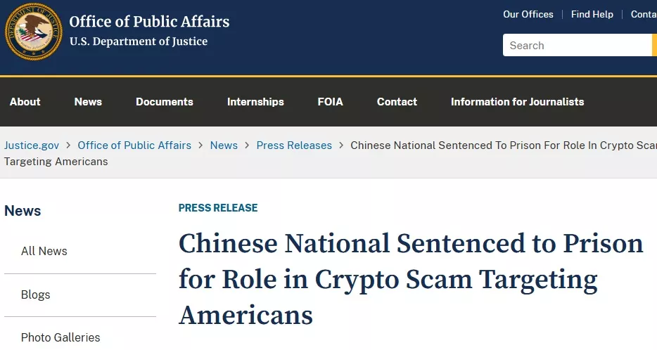 美国判处中国公民 46 个月监禁 涉及针对美國人的加密诈骗案