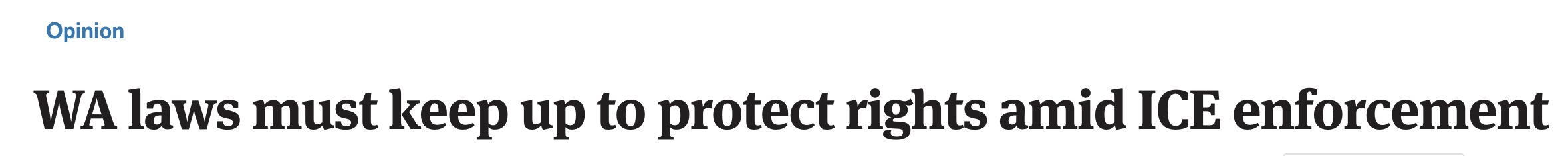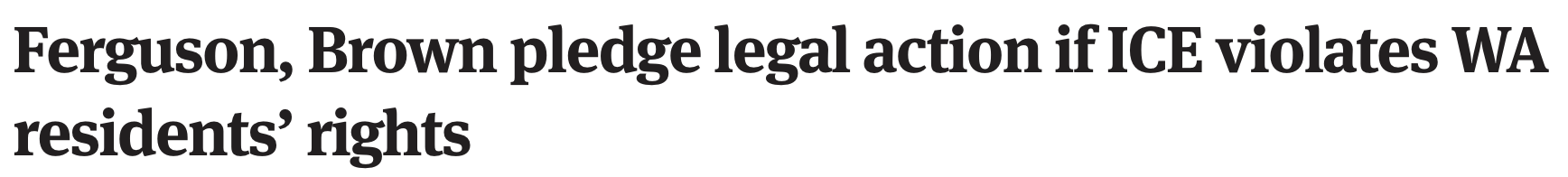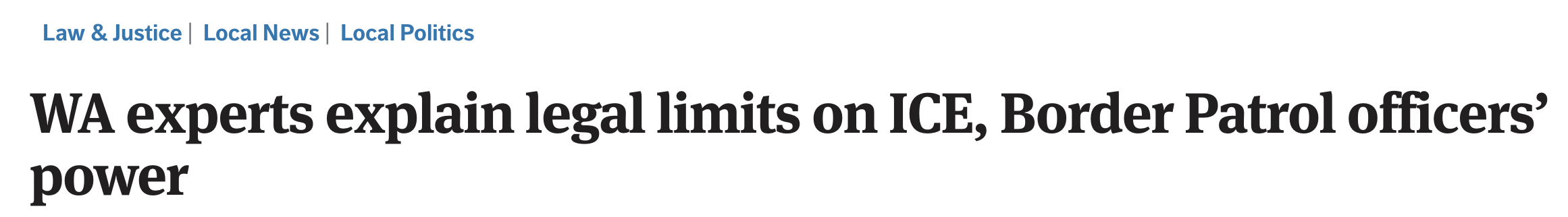 不久之前在明尼阿波利斯发生的致命枪击事件震动全美。一名重症监护室护士在街头遭移民与海关执法局官员开枪击毙,而原因仅仅是因使用手机拍摄执法人员与抗议者。华盛顿州州长Bob Ferguson与州总检察长Nick Brown随后公开谴责此类执法行为,指出其“可能违反宪法”,并强调:“移民执法本身并不违法,但任何执法都必须在法律边界之内,而不是凌驾于法律之上。”