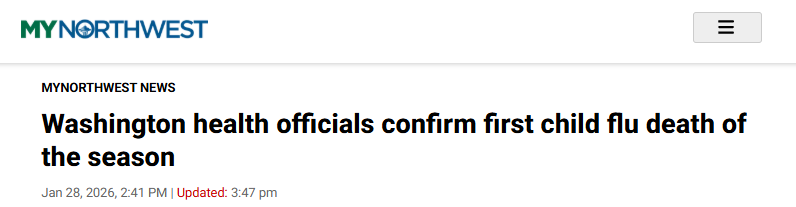 据报道,华盛顿州卫生部门通报称,本流感季全州已出现首例儿童流感死亡病例。