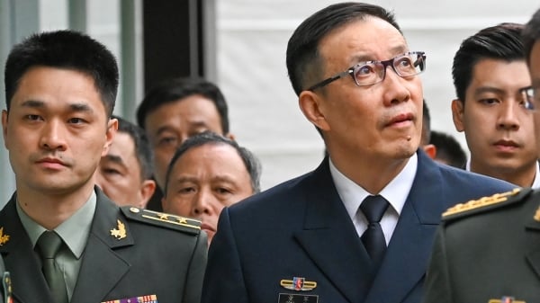 2024年5月31日,中共国防部长董军率代表团抵达新加坡香格里拉大饭店,出席第21届香格里拉对话峰会。(图片来源:Getty Images)