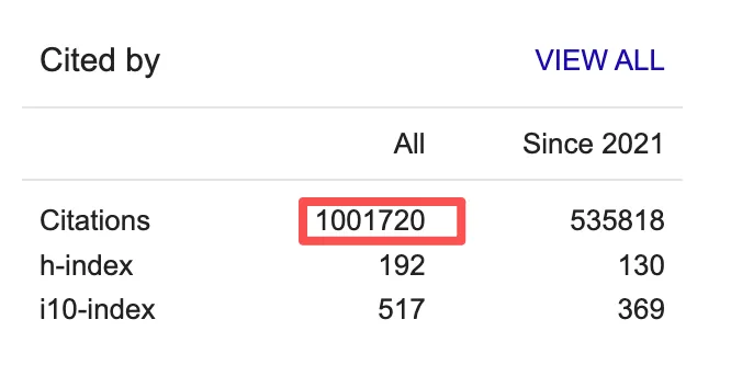 继 Yoshua Bengio 之后,Geoffrey Hinton 成为历史上第二位 Google Scholar 引用量突破 100 万的计算机科学家。