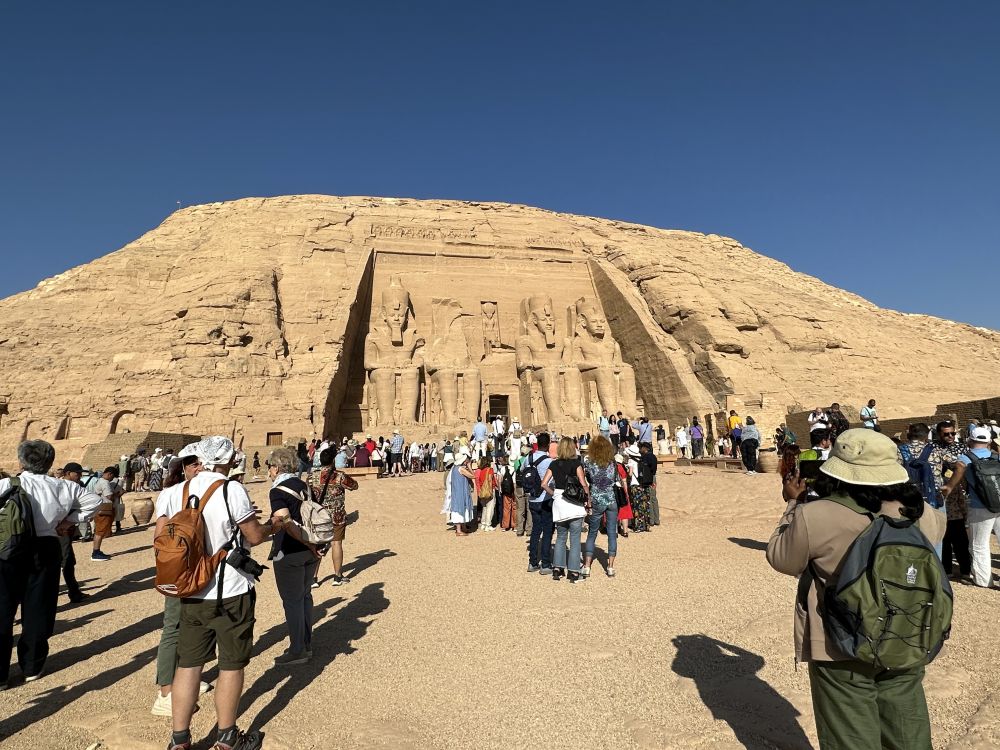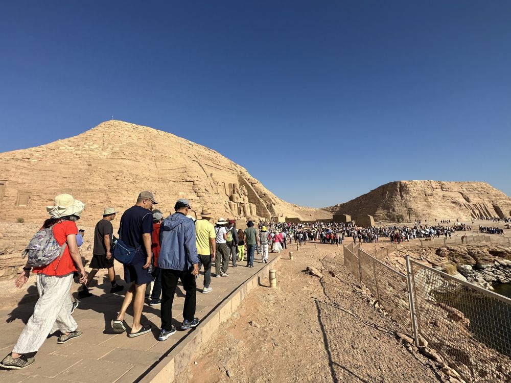 今天是此次埃及之行中最辛苦的一天。凌晨四点半,天还没亮,大家拎着饭包出发,驱车四个小时,来到靠近苏丹边境的纳赛尔湖西岸,只为亲眼目睹那座伟大的阿布辛贝神庙。