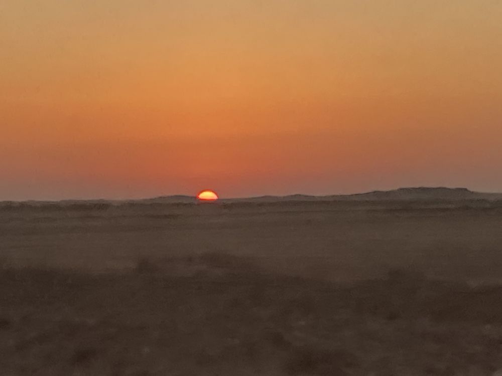 1. 沙漠日出:一轮红日自撒哈拉沙漠的尽头喷薄而出,天地瞬间被染上一层温暖的金色。