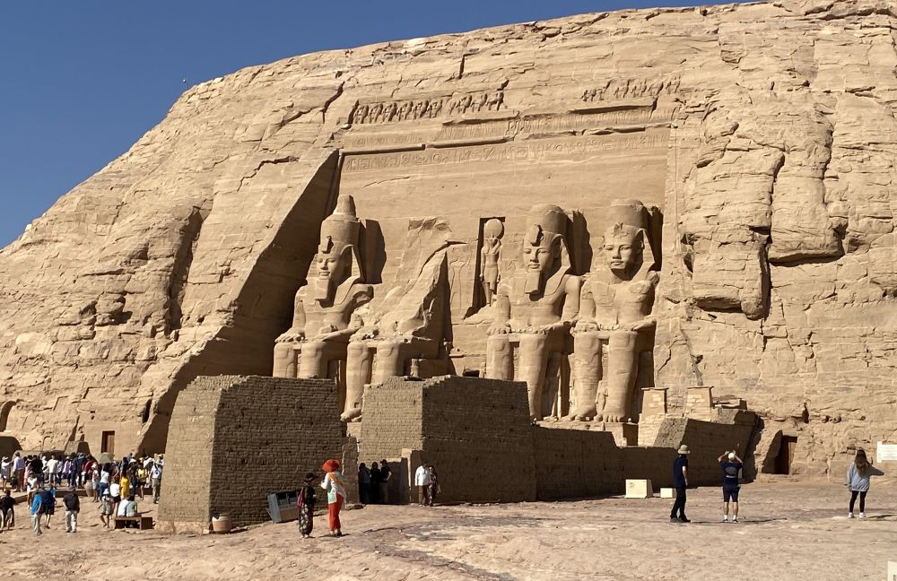 2. 阿布辛贝神庙(Abu Simbel Temples):是古埃及最宏伟、也最具震撼力的神庙建筑群之一。神庙由新王国时期第十九王朝的法老拉美西斯二世于公元前13世纪下令修建,距今大约 3286 年,主要包括两座岩窟神庙:大阿布辛贝神庙和小阿布辛贝神庙,共同彰显了法老的王权、信仰与不朽意志。