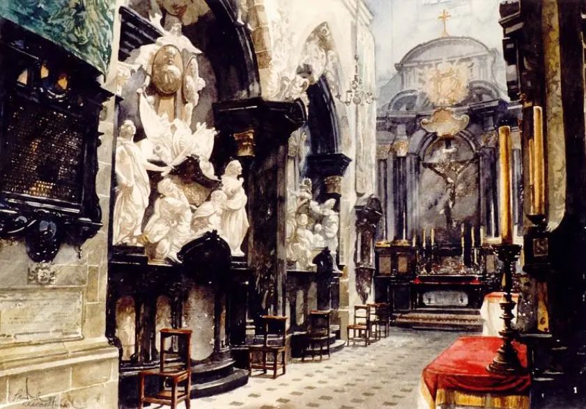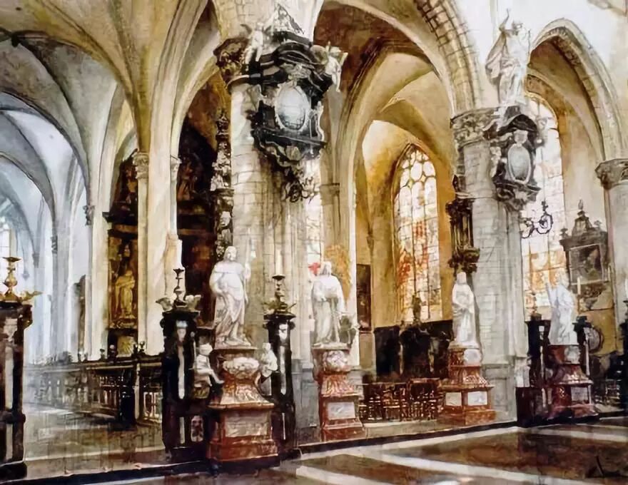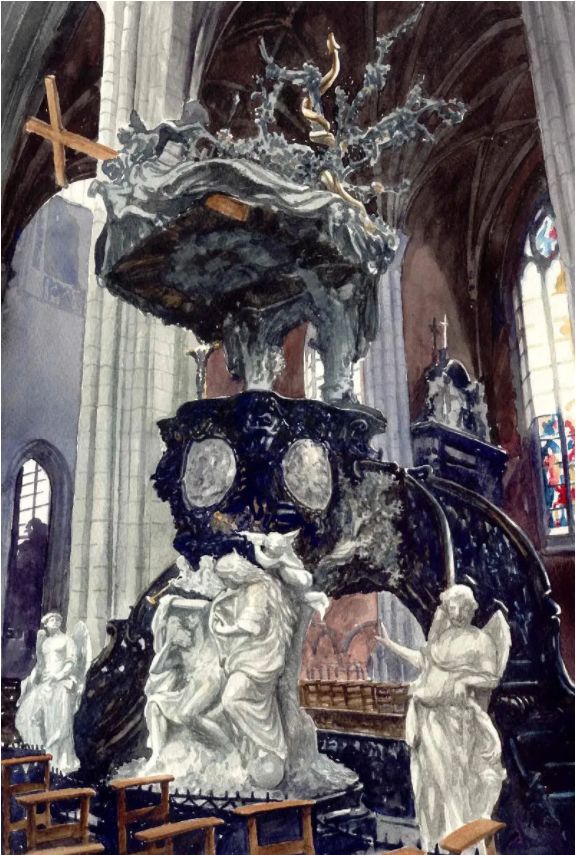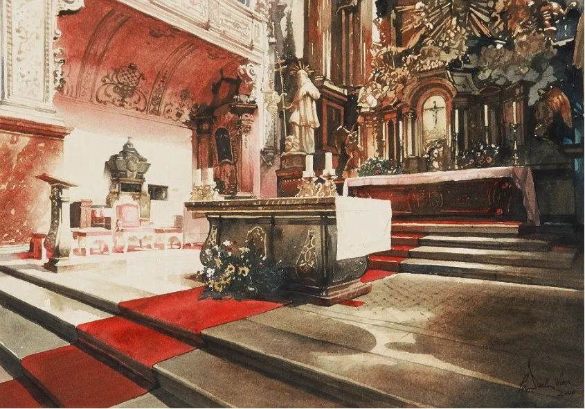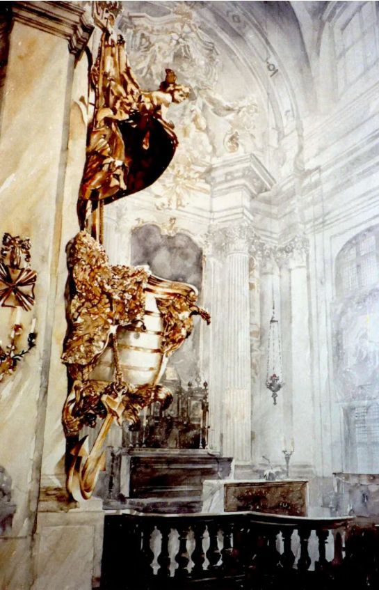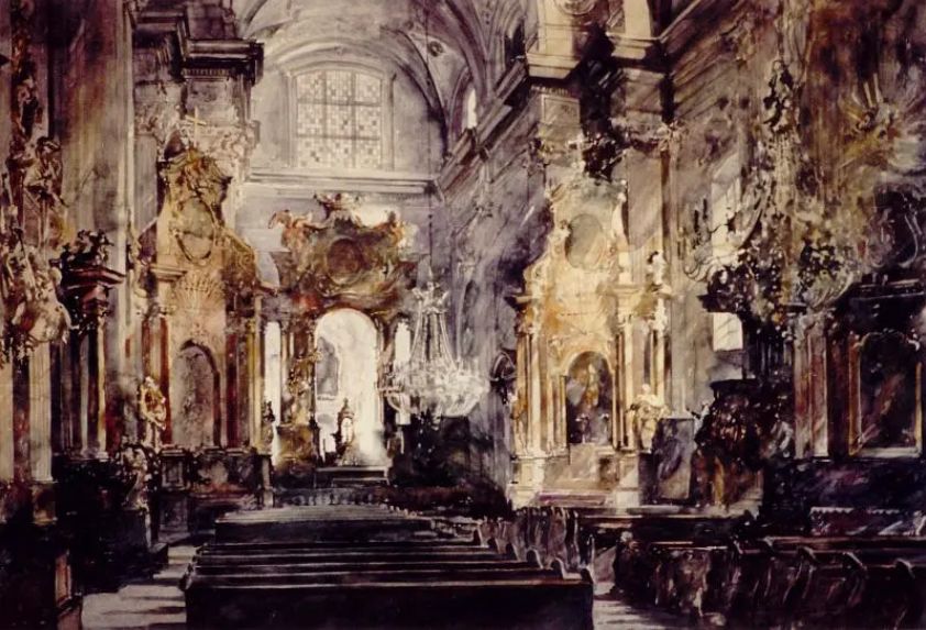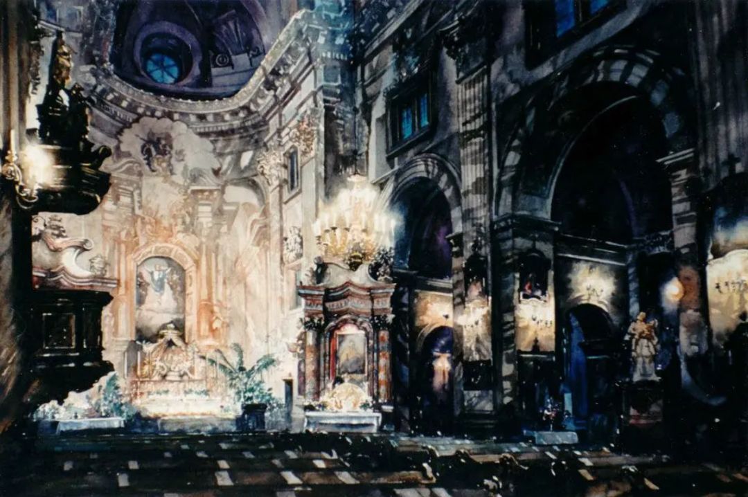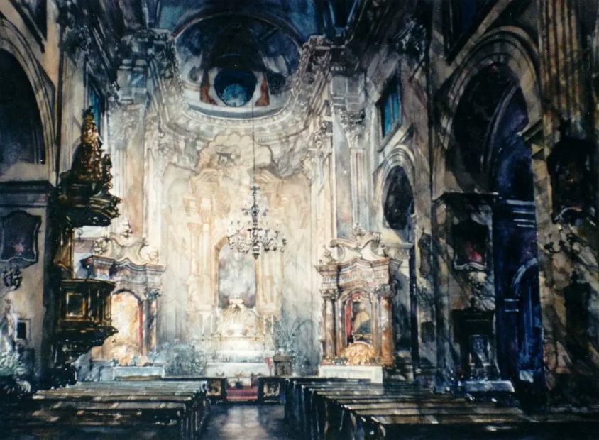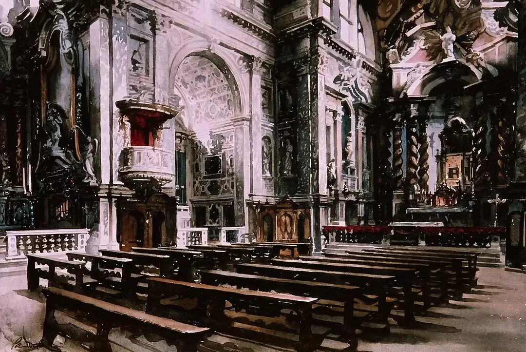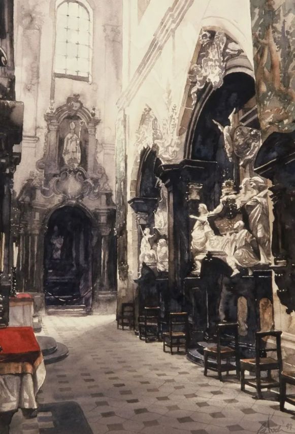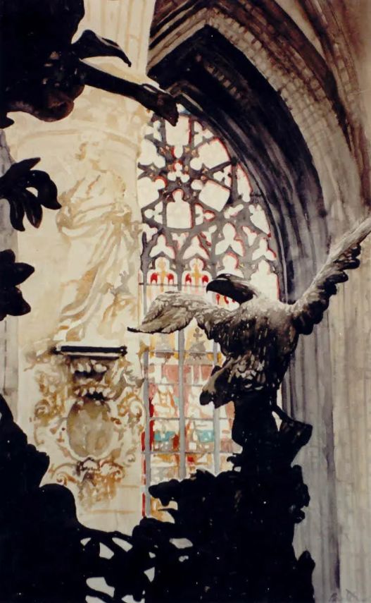 我特别喜欢画大教堂里的那种感觉的神秘,从这些结构里,我感到自己的渺小和微不足道,在那里,没有世俗的想法——我们和它们之间有一个神圣光明与阴暗的和谐,在显示着所有的细节和空间的美,为此能使我的内心安宁和兴奋。——保罗 迪莫其