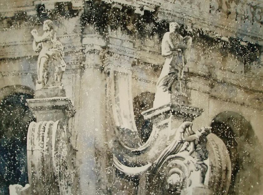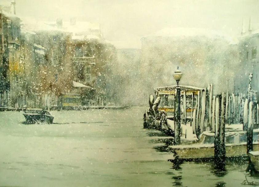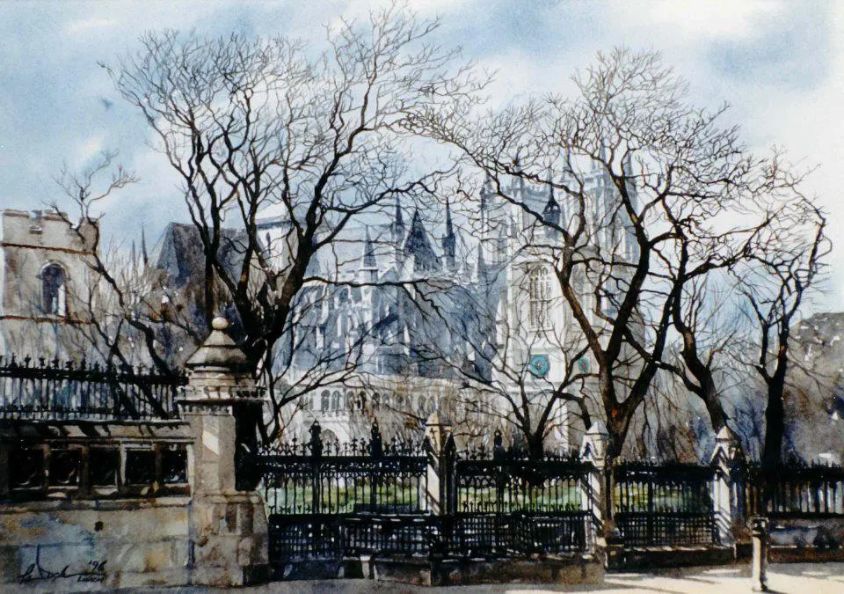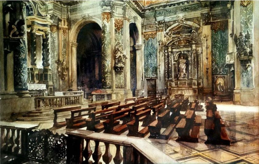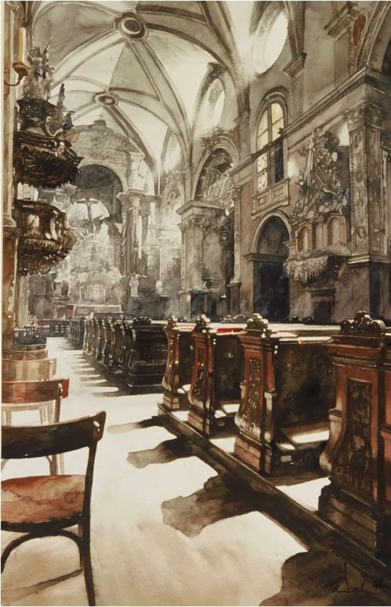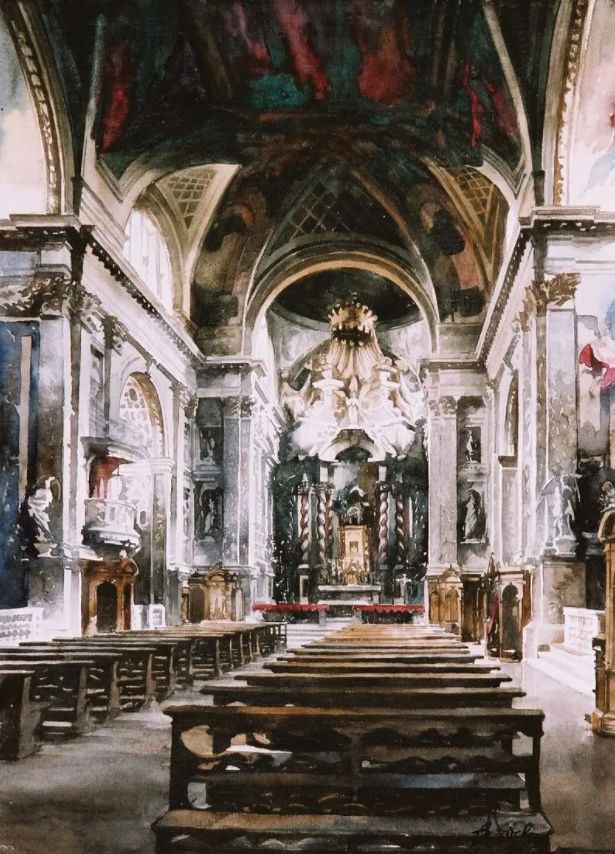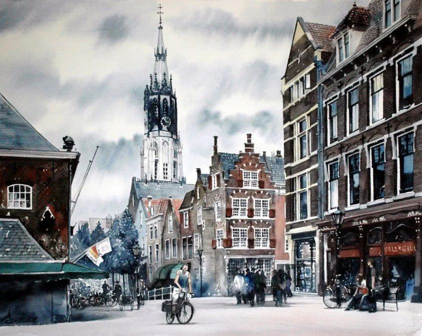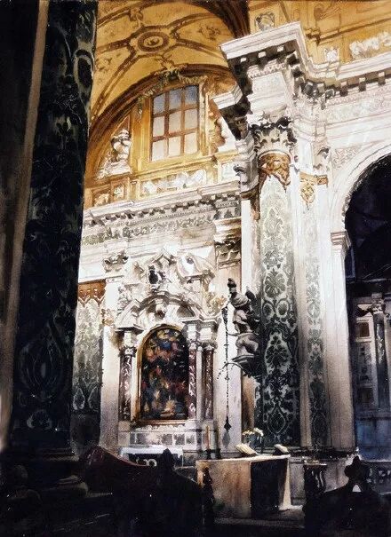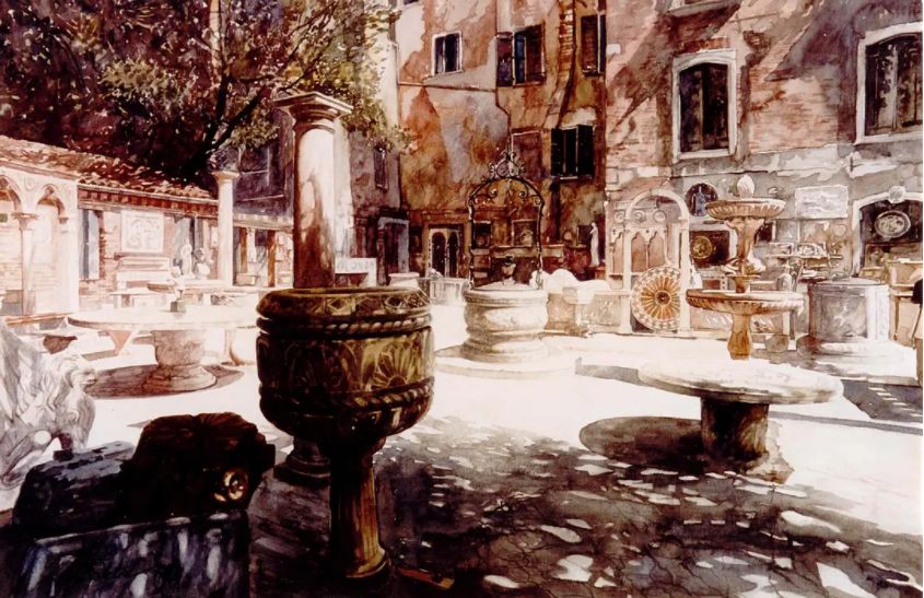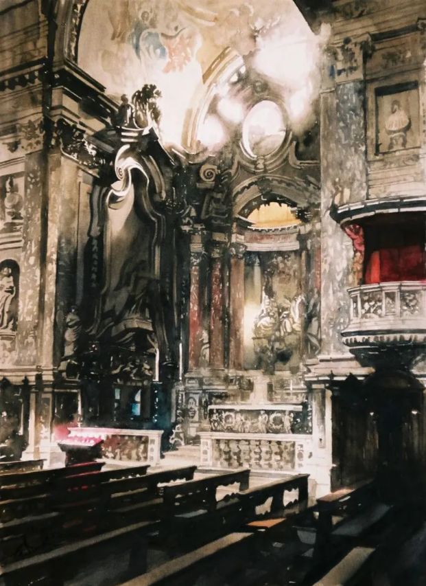 他笔下的建筑水彩,有着胶片般的质感水彩名师