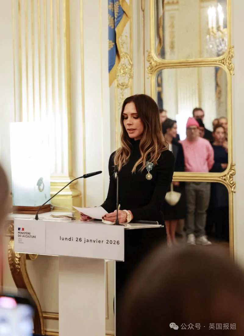 维多利亚荣获法国艺术与文学骑士勋章,一家人齐聚,共同迎接颁奖时刻。