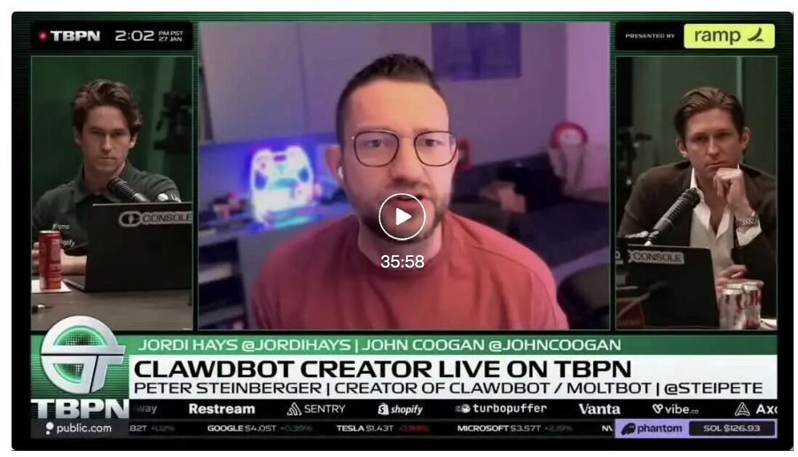 Clawdbot爆火之后,Peter Steinberger上了一个节目。
