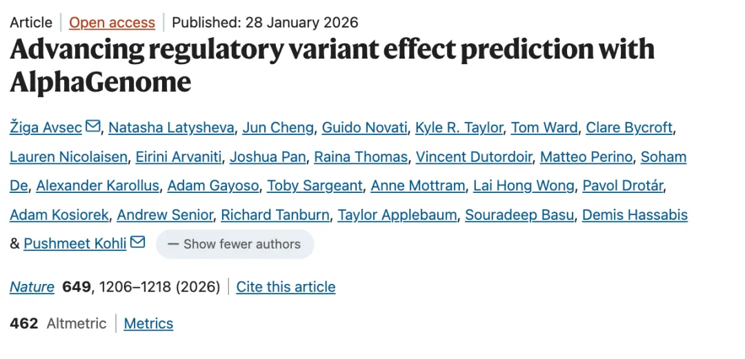 1月29日,Nature刊发了来自DeepMind团队的大模型AlphaGenome对于非编码基因变异的预测结果,该模型首次实现了长序列上下文和单碱基分辨率的调控区变异影响准确预测。且仅仅一个模型,就能够预测距离基因区1M范围内单碱基变异的各种影响,准确性在许多方面还超越了现有最佳的专用模型。