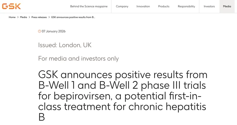 最近,GSK(葛兰素史克)全新乙肝药物 Bepirovirsen 传来消息:关键 3 期临床试验已达主要终点,展现出具有临床意义的「功能性治愈」效果。