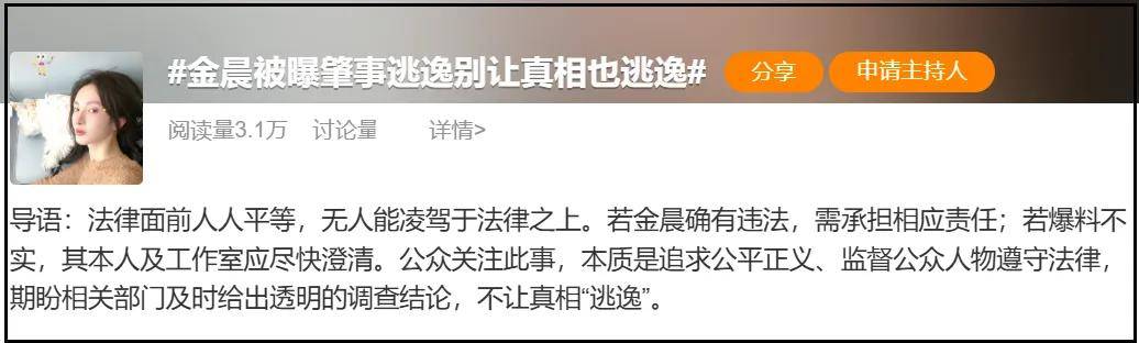 金晨涉嫌肇事逃逸找助理顶包风波有了新进展,官媒发声了。