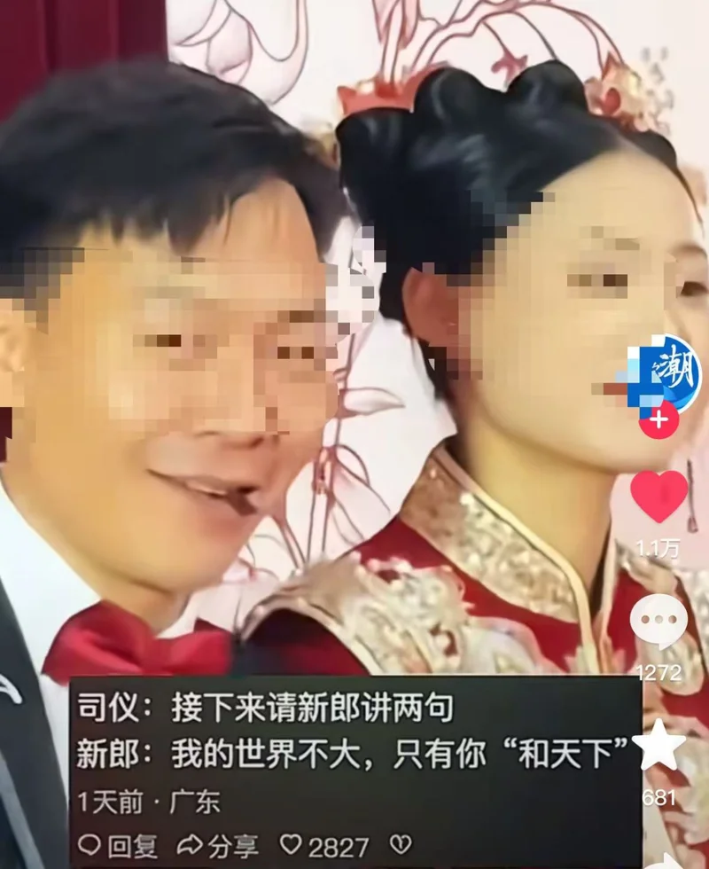 一旁新娘的脸却瞬间垮下,只剩满脸无语和尴尬。