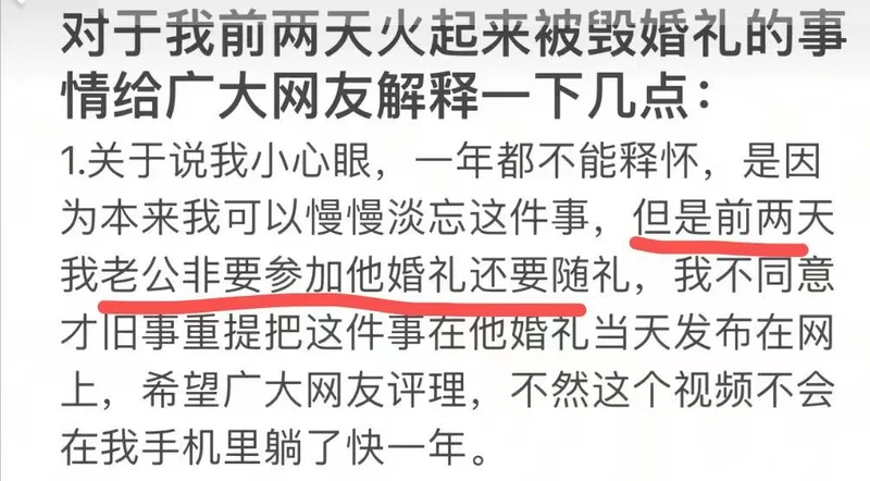 最近,把这件事发到网上,不是新娘小心眼,非要旧事重提。