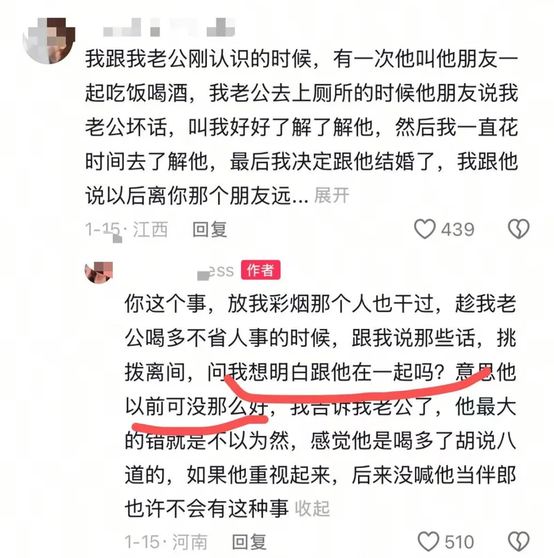 趁网友老公喝得不省人事,这个好哥们突然给网友说了很多莫名其妙的话。