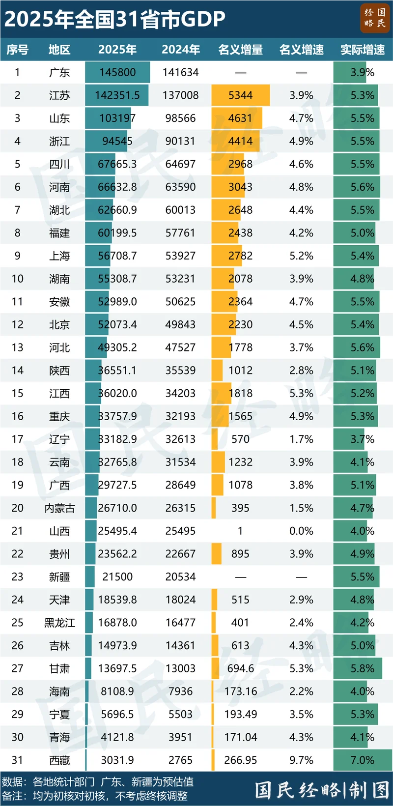去年以来,外有关税战冲击,内有产业洗牌,加上房地产调整,省市经济随之波动。