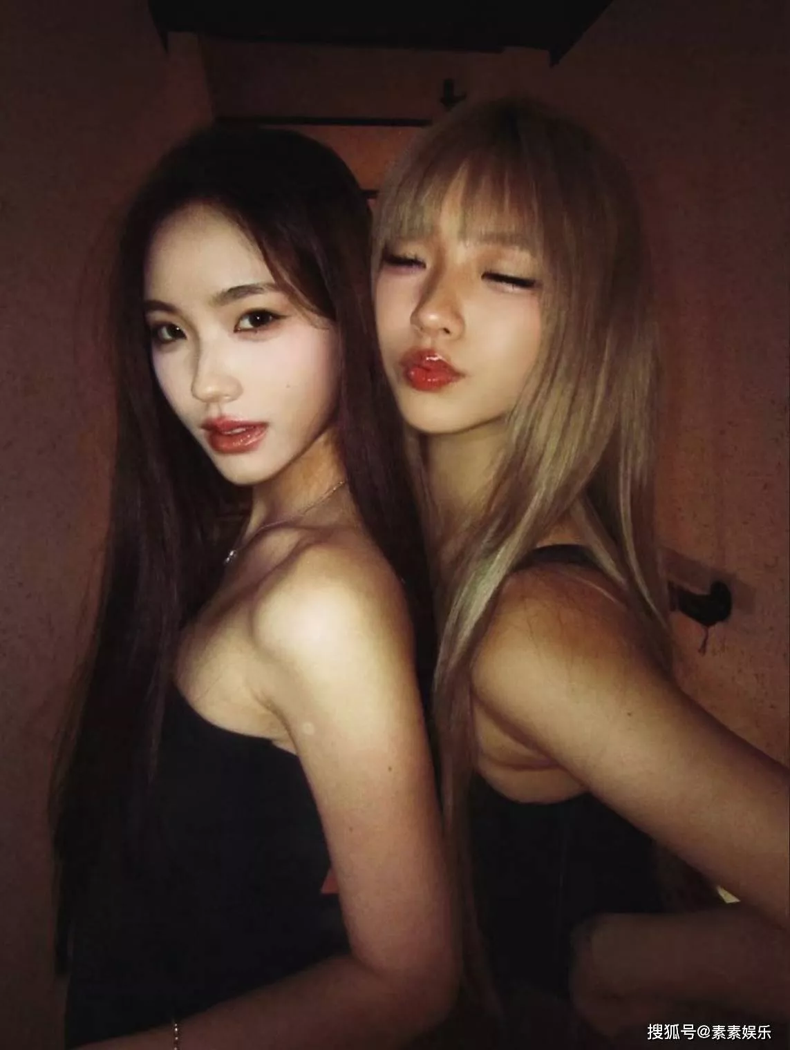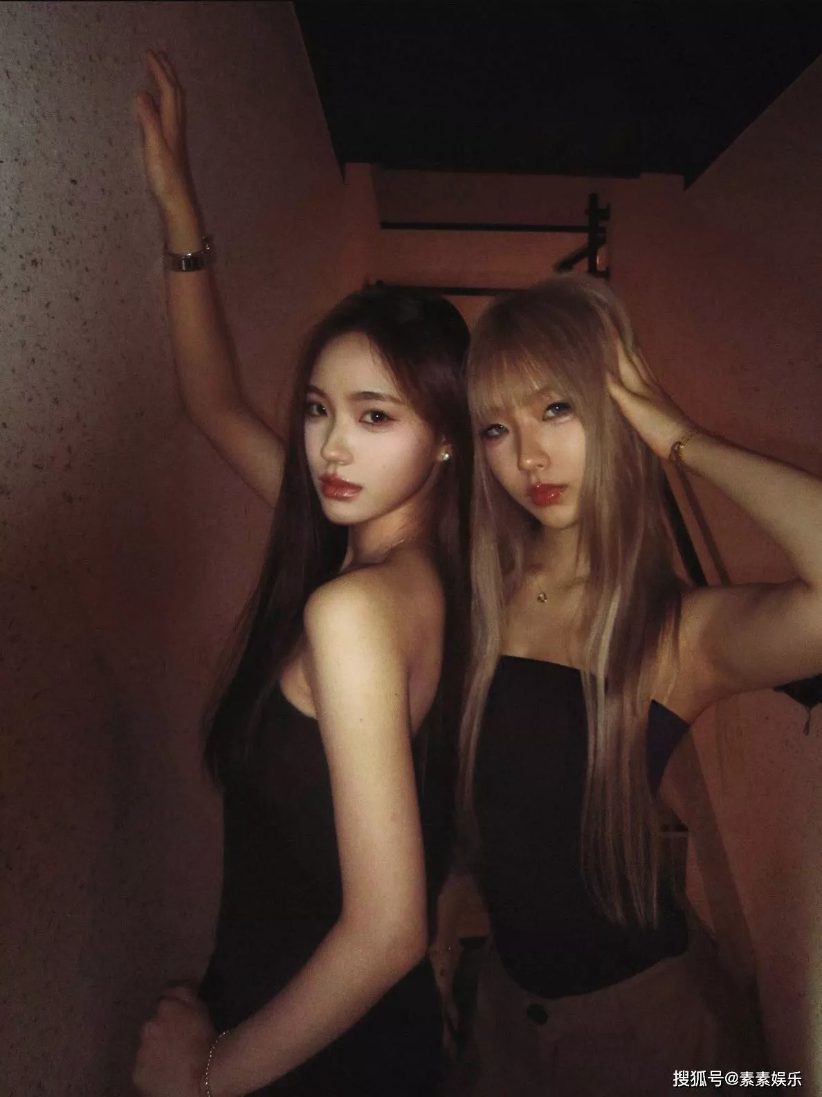姐妹在楼道里玩“暗黑”风格拍摄,都是属于最美星二代的代表,特别养眼。