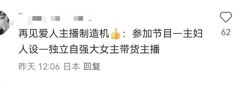 《再见爱人》主播制造机:参加节目—主妇人设—独立自强大女主带货主播。
