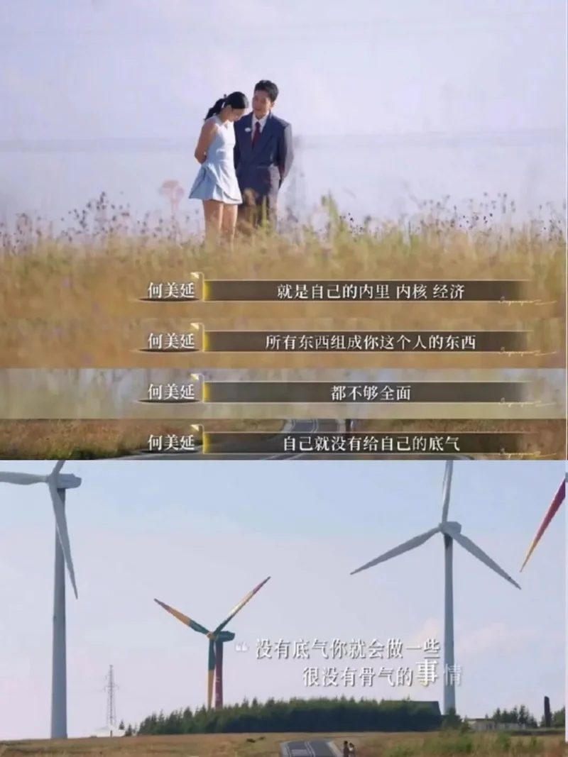 大结局里,她是这么坦白的:“我其实不想下车,我知道看起来一定很窝囊,我也能想到各种各样的声音,希望你能更强大,我也知道自己在面对着一个什么样的关系,但是我可能依然会用这种自欺欺人的方式,因为软弱。现在的我依然软弱,就是自己的内里、内核、经济,所有东西组成你这个人,都不够全面,自己就没有给自己的底气,没有底气你就会做很没有骨气的事情……”