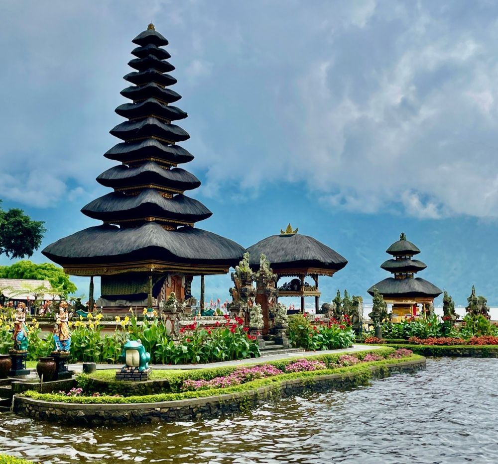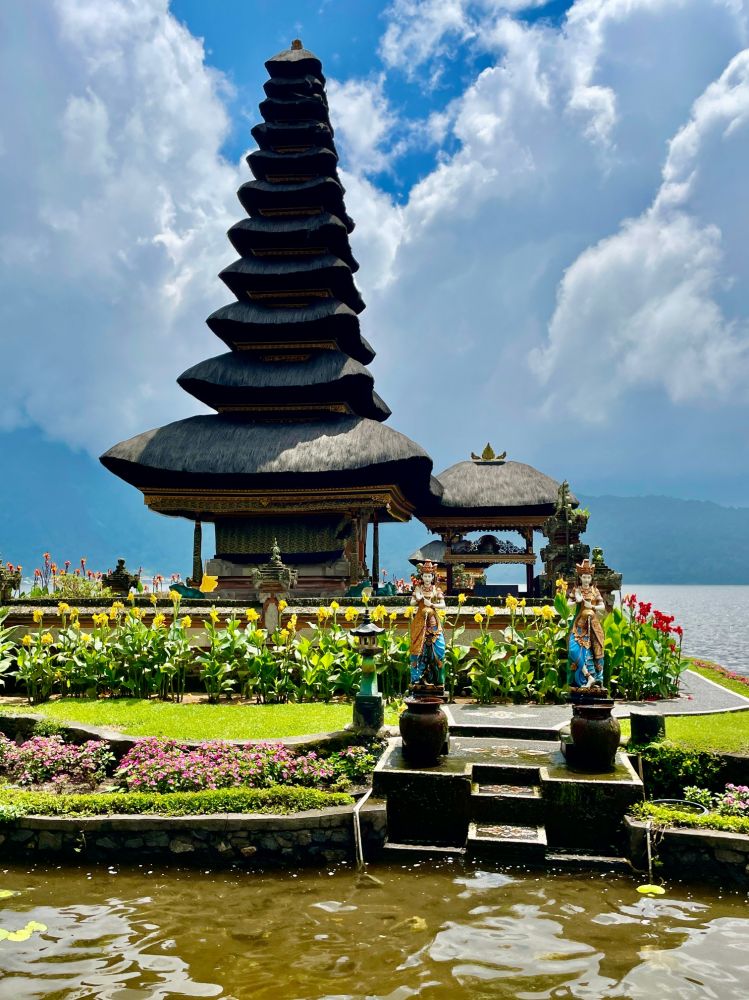 乌伦达努布拉坦寺,一座漂浮在巴厘岛北部贝拉坦湖上的寺庙,水神庙,供奉巴厘岛水、湖泊和河流女神黛维·达努。