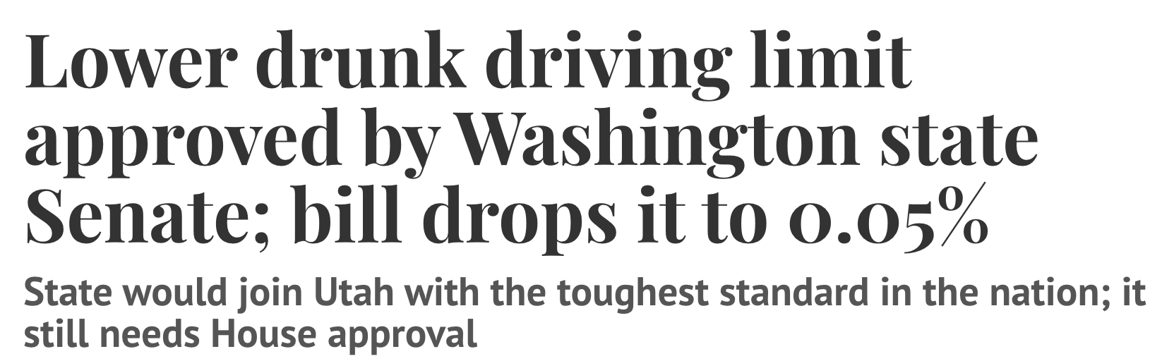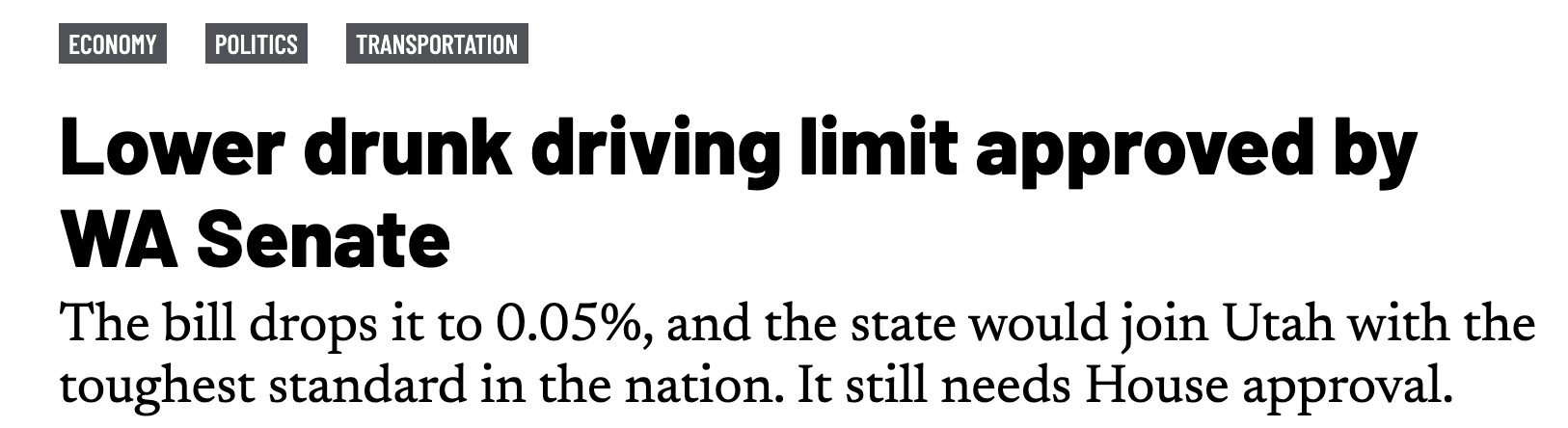 本周三(28日),华州参议院以26比23的微弱优势通过一项备受瞩目的提案——Senate Bill 5067,提议将司机的血液酒精浓度(BAC)法定上限从目前的0.08%下调至0.05%。若该提案在众议院获得通过并由州长签署成法,新标准将于明年7月1日正式生效。届时,华州将成为继犹他州之后,全美第二个实施0.05%醉驾标准的州。