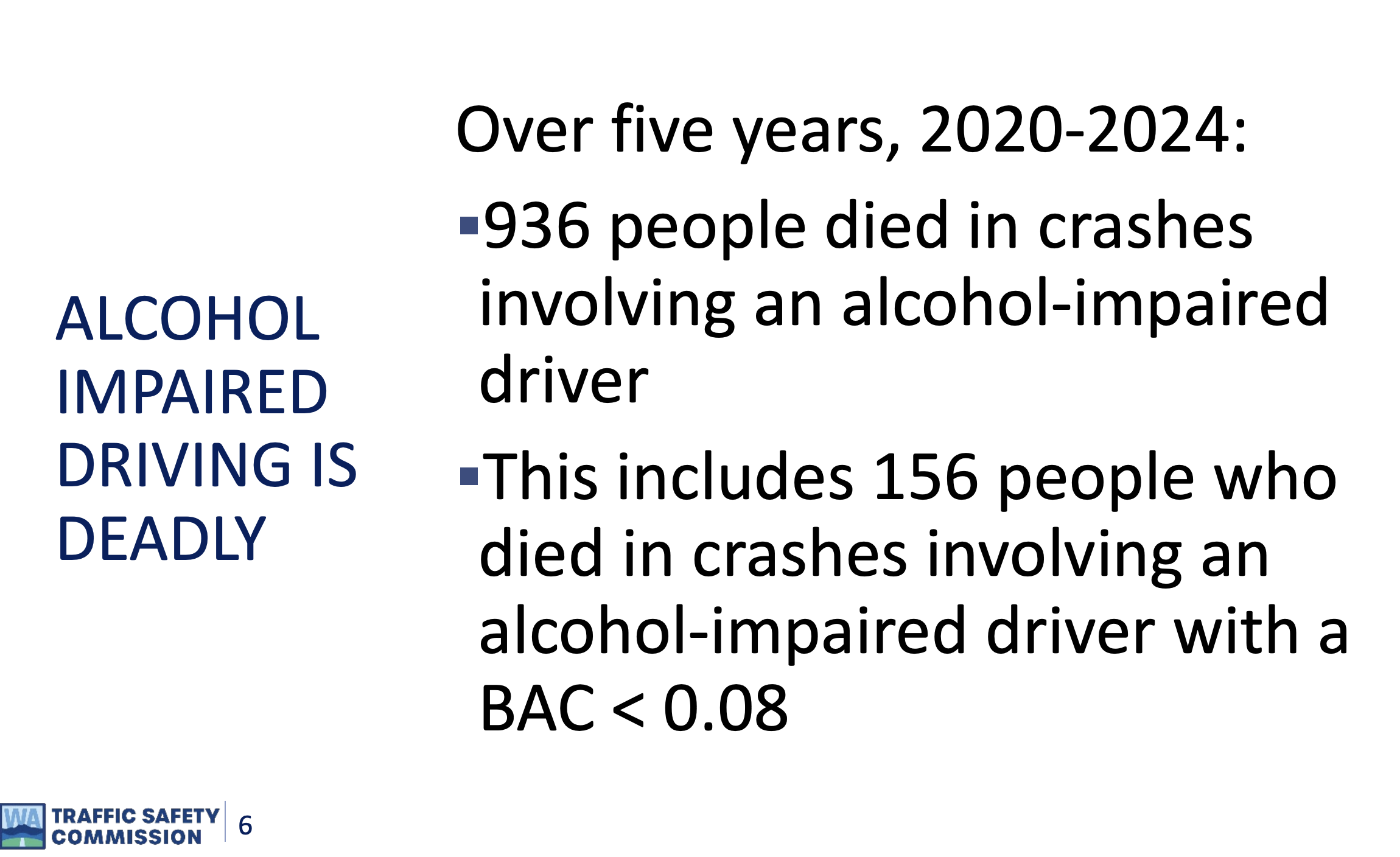 支持阵营反复强调,现行0.08%的标准已无法覆盖现实中的高风险情境。数据显示,在2020年至2024年期间,华州共有936人死于涉酒交通事故,其中至少156起致命事故发生时,司机的BAC低于0.08%。