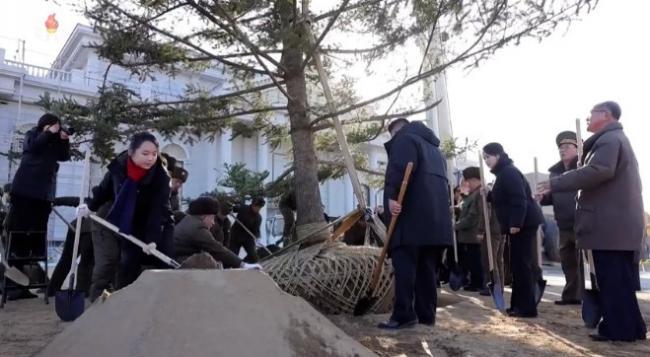 当时,金主爱戴着象征人共旗的红蓝白相间的围巾,手持铁锹,与父亲金正恩一起参与植树。金正恩的妻子李雪主、妹妹劳动党副部长金与正、外务相崔善姬也一同参与了植树活动。演绎出了最高领导人的家人以及干部们都被动员起来,为纪念馆的建设贡献力量的场景。