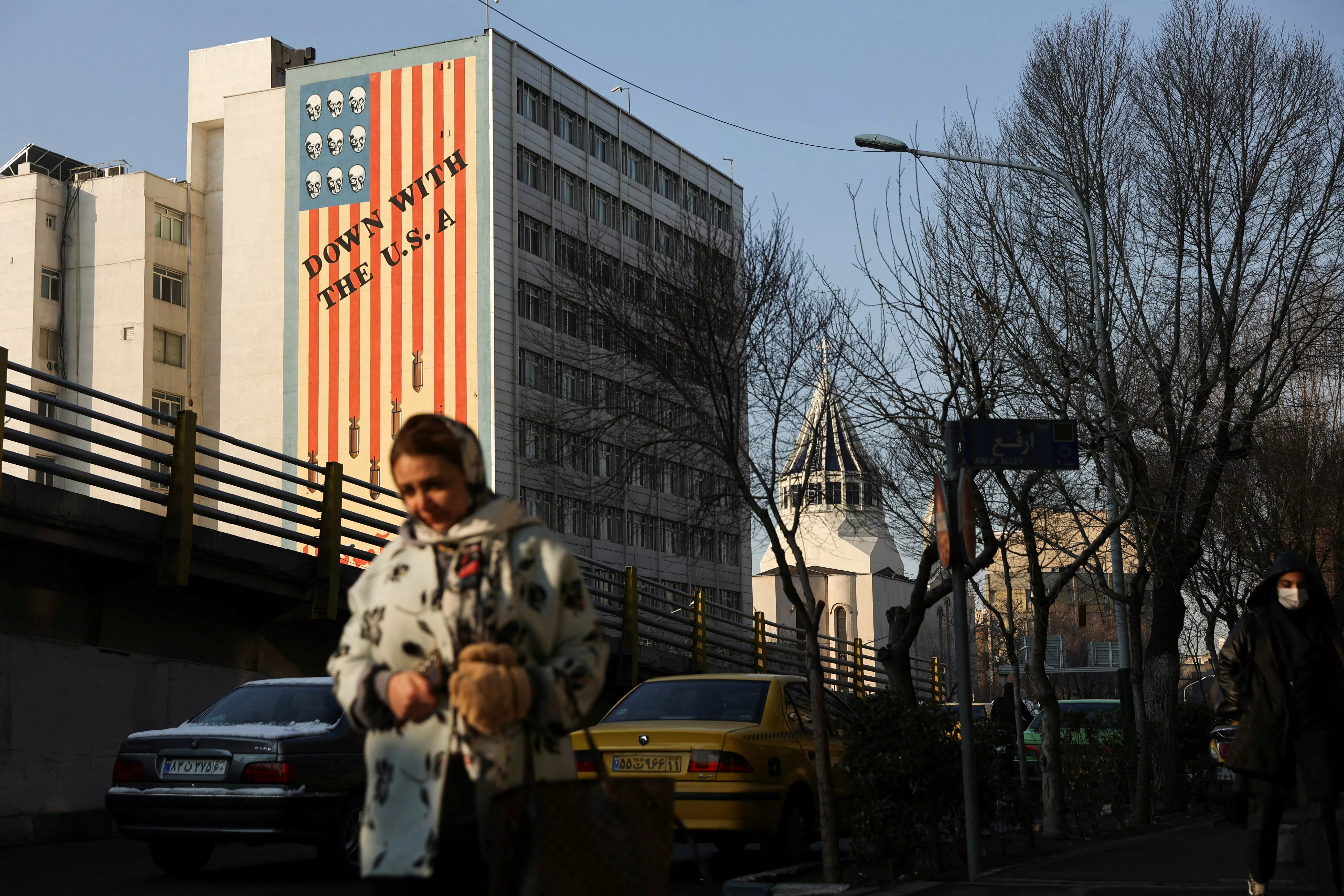 2026年1月24日,伊朗德黑兰一栋建筑上的反美壁画。(Reuters)