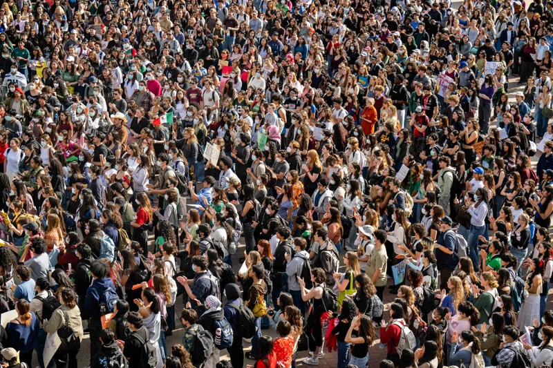 周三下午,UCLA上千名学生“集体罢课”,在校园内举行示威游行活动,抗议ICE执法以及特朗普政府推进的大规模驱逐行动。