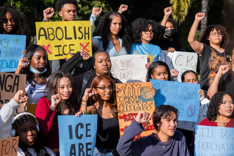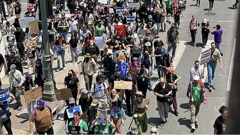 图中为去年夏天,洛杉矶街头抗议者反对ICE。图源:Lamag.com
