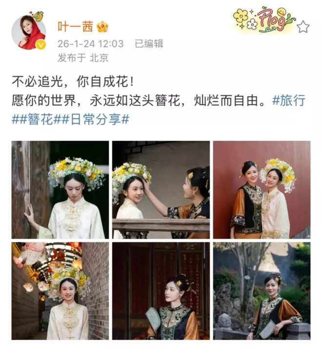 叶一茜晒母女簪花合照,森蝶尽显大家闺秀范陌说娱乐